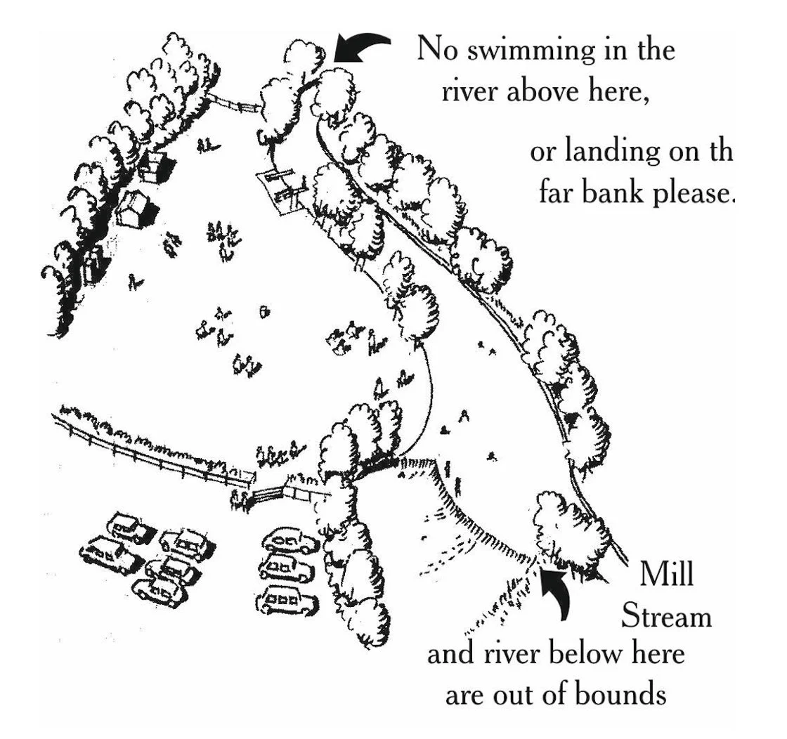 Swimming is only allowed above the weir as far as the Club field extends. Landing on the opposite bank or the island is not allowed.
